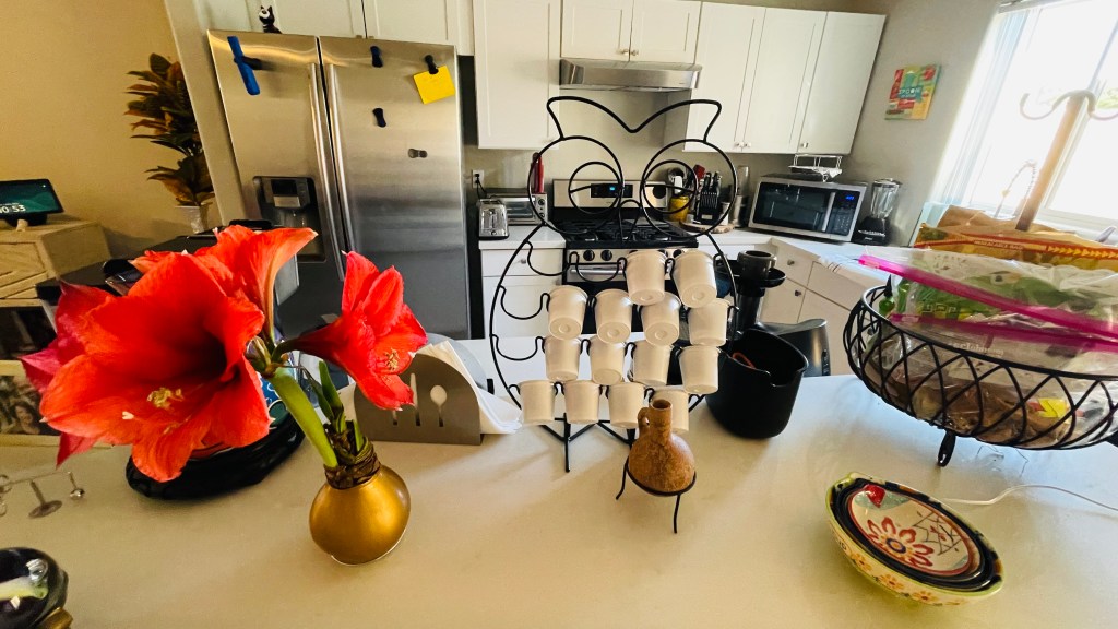Today, I have groceries in my refrigerator that I was able to pay for with my hard-earned cash. The flowers are perfectly arranged on my kitchen table. I notice each flower and color and think to myself, “Thank you God”.